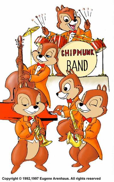 This is a very old drawing, back from 1992. As you can see I was a great Rescue Rangers fan then. And yes, the chipmunks are exactly Disney Chip'n'Dale sort. It used to be a color piece, belonging to one my friend; I dug out the ink trace I used to make the color one, scanned it and recolored. It looks just the same as the old original. Ink on paper; computer coloring. |