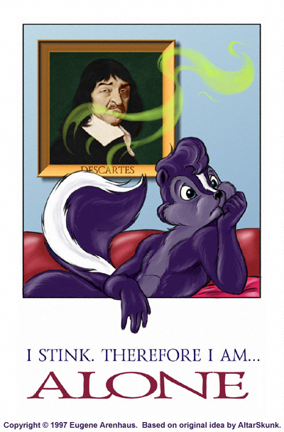 My apologies to Descartes and whatever fans the honorable philosopher happens to have around... The caption is by the inventive Joe Kennedy.