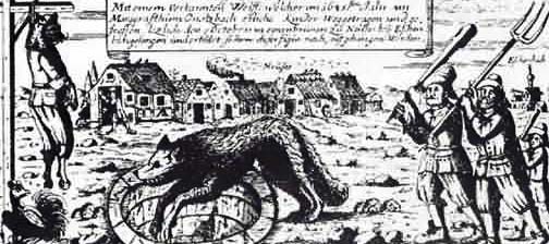 CHAPTER VIIJEAN GRENIEROn the Sand-dunes • A Wolf attacks Marguerite Poirier • Jean Grenier brought to Trial • His Confessions • Charges of Cannibalism proved • His Sentence • Behaviour in the Monastery • Visit of Del'ancre. One fine afternoon in the spring, some village girls were tending their sheep on the sand-dunes which intervene between the vast forests of pine covering the greater portion of the present department of Landes in the south of France, and the sea. The brightness of the sky, the freshness of the air puffing up off the blue twinkling Bay of Biscay, the hum or song of the wind as it made rich music among the pines which stood like a green uplifted wave on the East, the beauty of the sand-hills speckled with golden cistus, or patched with gentian-blue, by the low growing Gremille couchée, the charm of the forest-skirts, tinted [ page 86 ] variously with the foliage of cork-trees, pines, and acacia, the latter in full bloom, a pile of rose-coloured or snowy flowers, all conspired to fill the peasant maidens with joy, and to make their voices rise in song and laughter, which rung merrily over the hills, and through the dark avenues of evergreen trees. Now a gorgeous butterfly attracted their attention, then a flight of quails skimming the surface. "Ah!" exclaimed Jacquiline Auzun," ah, if I had my stilts and bats, I would strike the little birds down, and we should have a fine supper." "Now, if they would fly ready cooked into one's mouth, as they do in foreign parts!" said another girl. "Have you got any new clothes for the S. Jean?" asked a third; "my mother has laid by to purchase me a smart cap with gold lace." "You will turn the head of Etienne altogether, Annette!" said Jeanne Gaboriant. "But what is the matter with the sheep?" She asked because the sheep which had been quietly browsing before her, on reaching a small depression in the dune, had started away as though frightened at something. At the same time one of the dogs began to growl and show his fangs. [ page 87 ] The girls ran to the spot, and saw a little fall in the ground, in which, seated on a log of fir, was a boy of thirteen. The appearance of the lad was peculiar. His hair was of a tawny red and thickly matted, falling over his shoulders and completely covering his narrow brow. His small pale-grey eyes twinkled with an expression of horrible ferocity and cunning, from deep sunken hollows. The complexion was of a dark olive colour; the teeth were strong and white, and the canine teeth protruded over the lower lip when the mouth was closed. The boy's hands were large and powerful, the nails black and pointed like bird's talons. He was ill clothed, and seemed to be in the most abject poverty. The few garments he had on him were in tatters, and through the rents the emaciation of his limbs was plainly visible. The girls stood round him, half frightened and much surprised, but the boy showed no symptoms of astonishment. His face relaxed into a ghastly leer, which showed the whole range of his glittering white fangs. "Well, my maidens," said he in a harsh voice, "which of you is the prettiest, I should like to know; can you decide among you?" "What do you want to know for?" asked Jeanne [ page 88 ] Gaboriant, the eldest of the girls, aged eighteen, who took upon herself to be spokesman for the rest. "Because I shall marry the prettiest," was the answer. "Ah!" said Jeanne jokingly; "that is if she will have you, which is not very likely, as we none of us know you, or anything about you." "I am the son of a priest," replied the boy curtly. "Is that why you look so dingy and black?" "No, I am dark-coloured, because I wear a wolf-skin sometimes." "A wolf-skin!" echoed the girl; "and pray who gave it you?" "One called Pierre Labourant." "There is no man of that name hereabouts. Where does he live?" A scream of laughter mingled with howls, and breaking into strange gulping bursts of fiendlike merriment from the strange boy. The little girls recoiled, and the youngest took refuge behind Jeanne. "Do you want to know Pierre Labourant, lass? Hey, he is a man with an iron chain about his neck, which he is ever engaged in gnawing. Do you want to [ page 89 ] know where he lives, lass? Ha., in a place of gloom and fire, where there are many companions, some seated on iron chairs, burning, burning; others stretched on glowing beds, burning too. Some cast men upon blazing coals, others roast men before fierce flames, others again plunge them into caldrons of liquid fire." The girls trembled and looked at each other with scared faces, and then again at the hideous being which crouched before them. "You want to know about the wolf-skin cape?" continued he. "Pierre Labourant gave me that; he wraps it round me, and every Monday, Friday, and Sunday, and for about an hour at dusk every other day, I am a wolf, a were-wolf. I have killed dogs and drunk their blood; but little girls taste better, their flesh is tender and sweet, their blood rich and warm. I have eaten many a maiden, as I have been on my raids together with my nine companions. I am a were-wolf! Ah, ha! if the sun were to set I would soon fall on one of you and make a meal of you!" Again he burst into one of his frightful paroxysms of laughter, and the girls unable to endure it any longer, fled with precipitation. Near the village of S. Antoine de Pizon, a little girl of the name of Marguerite Poirier, thirteen years old, [ page 90 ] was in the habit of tending her sheep, in company with a lad of the same age, whose name was Jean Grenier. The same lad whom Jeanne Gaboriant had questioned. The little girl often complained to her parents of the conduct of the boy: she said that he frightened her with his horrible stories; but her father and mother thought little of her complaints, till one day she returned home before her usual time so thoroughly alarmed that she had deserted her flock. Her parents now took the matter up and investigated it. Her story was 